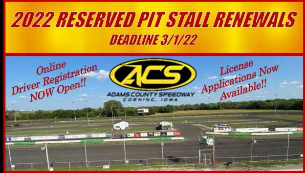 DRIVER INFO-- You can now renew your 2022 Reserved Pit Stalls at www.acspeedway.com (link below). Deadline to renew will be 3/1/22 after that we will offer any open spots to those on the waiting list and the cost will increase if still available. Price is $100 by 3/1.